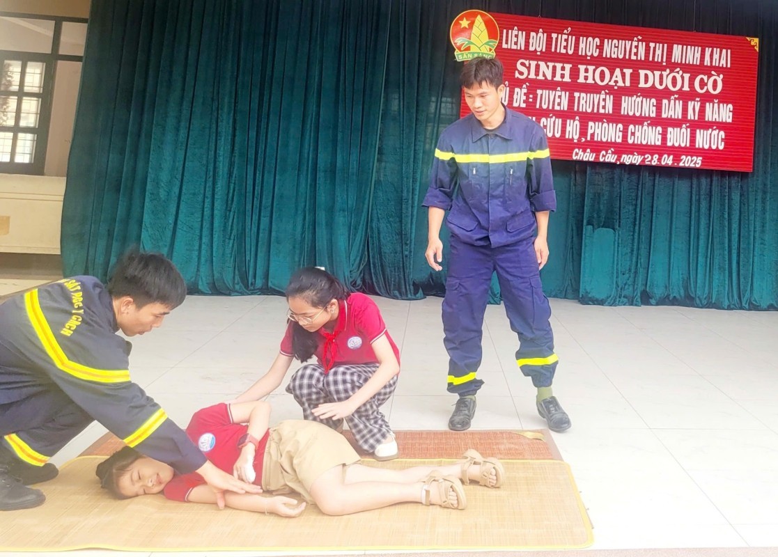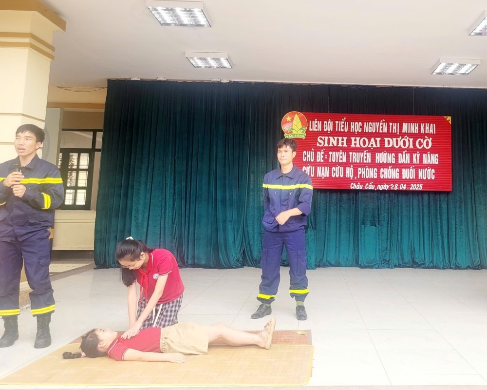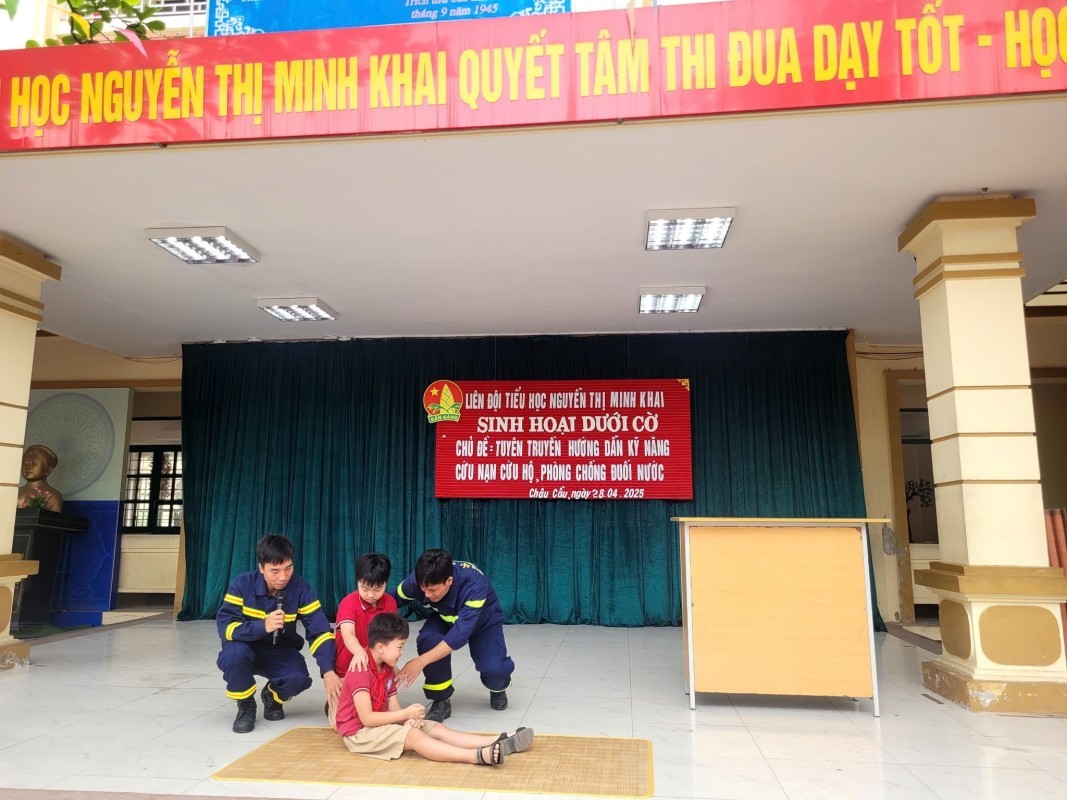 Trường tổ chức Sinh hoạt dưới cờ với chủ đề “Tuyên truyền kỹ năng cứu nạn, cứu hộ và phòng chống đuối nước” nhằm nâng cao ý thức an toàn cho học sinh. Buổi sinh hoạt cung cấp kiến thức về nguyên nhân gây đuối nước và cách phòng tránh hiệu quả. Học sinh được hướng dẫn kỹ năng xử lý tình huống, sơ cứu ban đầu và gọi hỗ trợ khẩn cấp. Một số tình huống giả định và trò chơi giúp các em ghi nhớ sâu sắc. Hoạt động góp phần xây dựng môi trường học đường an toàn, chủ động và nhân văn.